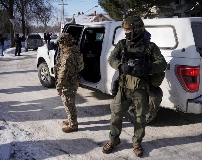 報道稱,ICE執法人員越來越普遍地使用帽子、口罩和太陽鏡來遮住面部,且不佩戴姓名牌,有時甚至難以辨認這些人員隸屬于哪個機構。對此,美國國土安全部辯稱,執法人員需要佩戴口罩來保護自己。